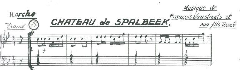 In 1940 kwam het Hasseltse gezin Vanstreels op het kasteel wonen. Het gezin hield er zich schuil omdat de vader in opdracht van het Duitse leger de aankopen van vlees voor de Duitse soldaten moest regelen. Dit werd door de lokale bevolking niet in dank afgenomen. De zoon van het gezin Vanstreels, René Leopold, Belgisch componist, muziekpedagoog, pianist, organist, beiaardier en fagottist, componeerde, men met zijn vader François, tijdens zijn verblijf in het kasteel gedurende de oorlog als dank zijn compositie ‘Marche pour le château de Spalbeek’. Hij finaliseerde die op 7 september 1944. De originele partituur is bewaard gebleven op het kasteel waar het vele jaren later, tijdens een algemene opruiming, van onder het stof is gehaald. Ondertussen bood ook de bosrijke omgeving van het kasteel nog anderen een veilige schuilplaats. Er verbleven namelijk meerdere, gevluchte Russen op het domein. In het oude eikenbos hadden ze zich ingegraven in holen. Eulalie kookte voor hen dagelijks en René bracht het eten op een afgesproken plaats. Hij heeft sporadisch een glimp van deze soldaten opgevangen.